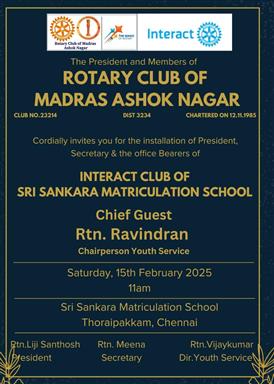 SRI SANKARA SCHOOL INSTALLATION - THORAIPAKAM , RTN.MURALI RAO BEIN. . .